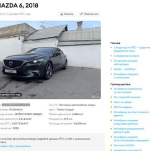 Mazda 6 2.5 AT, 2018, 86 000 км