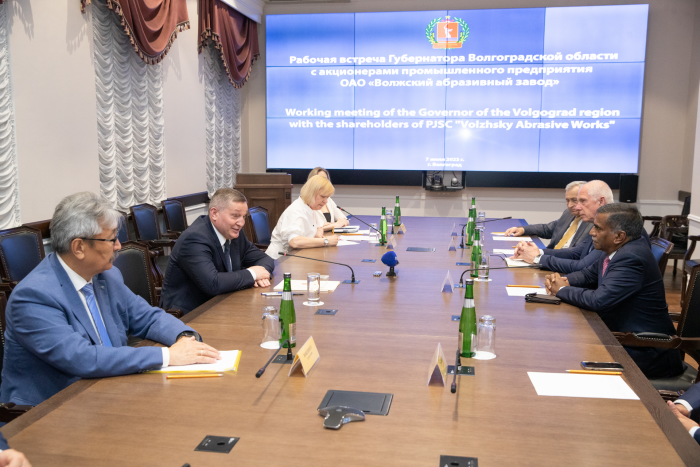 Губернатор Андрей Бочаров отметил, что партнерство Волгоградской области с компанией «Муругаппа групп» имеет системный и взаимовыгодный характер. Компания реализует на Волжском абразивном заводе эффективную производственную, управленческую, кадровую и социальную политику.