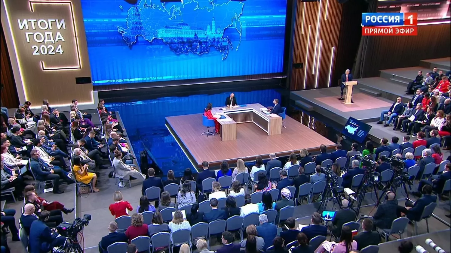 Прямая линия Владимира Путина в этом году продлилась 4 часа 27 минут. Несмотря на смешанный формат мероприятия, всё-таки заметный крен ощущался в сторону пресс-конференции — вопросы из зала от журналистов звучали заметно чаще, чем видеовопросы от россиян.