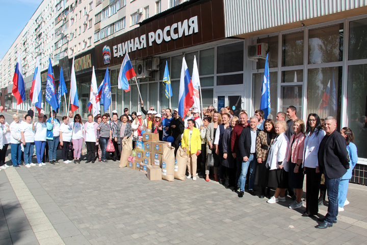Активные горожане, «Молодая Гвардия», сторонники «Единой России», депутаты Волжской городской Думы собрались на проспекте Ленина города Волжского у здания Местного отделения партии, чтобы не только доставить гуманитарную помощь, но и передать поздравление своему Президенту.