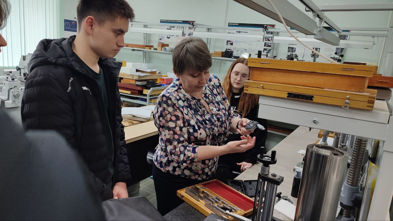 В лаборатории поверки средств измерений геометрических величин начальник отдела Ирина Долгополова рассказала о значимости профессии метролога, познакомила с эталонами и рабочими средствами измерений.