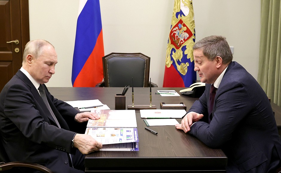 РИАЦ публикует подробности рабочей встречи Владимира Путина и Андрея Бочарова в Волгограде