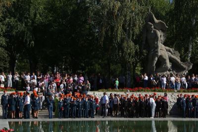 Сегодня на Мамаевом кургане состоялось торжественное посвящение в кадеты волгоградских школьников. Учащиеся специализированных кадетских классов муниципальных образовательных учреждений дали клятву с честью и достоинством носить это почетное звание. Ребят поздравили представители власти, силовых структур, общественники, депутаты.