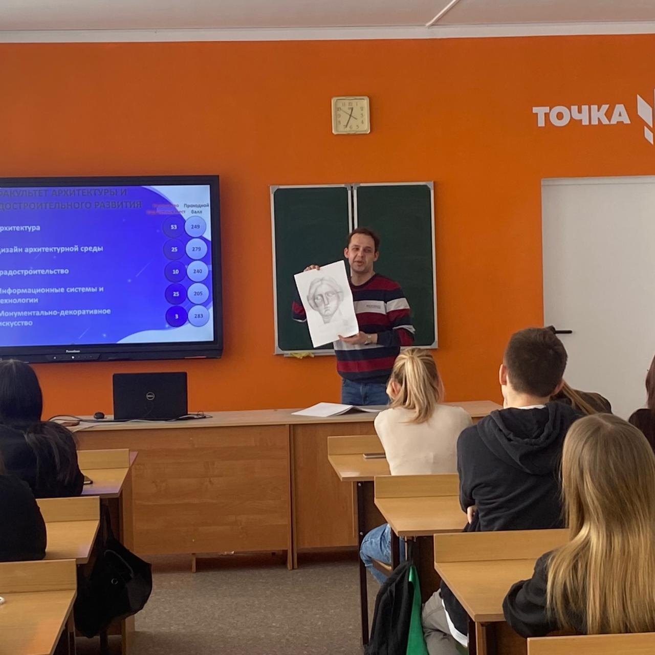 На этой встрече заместитель ответственного секретаря приемной комиссии ВолгГТУ М.В. Иванов дал характеристику специальностям, на которые будет осуществляться прием абитуриентов в 2024 году, уточнил необходимый для поступления перечень общеобразовательных предметов по результатам единого государственного экзамена, рассказал об организации и осуществлении образовательного процесса, перспективах трудоустройства и возможностях продолжения обучения, а также о творческой составляющей студенческой жизни. Максим Витальевич также отметил, что ребята могут значительно улучшить свои знания по всем предметам, входящим в перечень вступительных испытаний в Институт архитектуры и строительства ВолгГТУ, записавшись на курсы в Центре довузовской подготовки.
