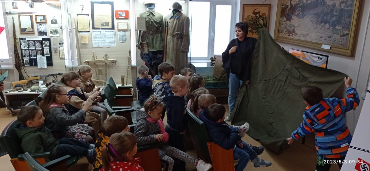 Для ребят был подготовлен увлекательный музейный урок, в ходе которого мальчики и девочки посмотрели кадры военной кинохроники, ознакомились с оружием Победы советских солдат, формой бойцов Красной армии, поучаствовали в конкурсе «Найди экспонат».