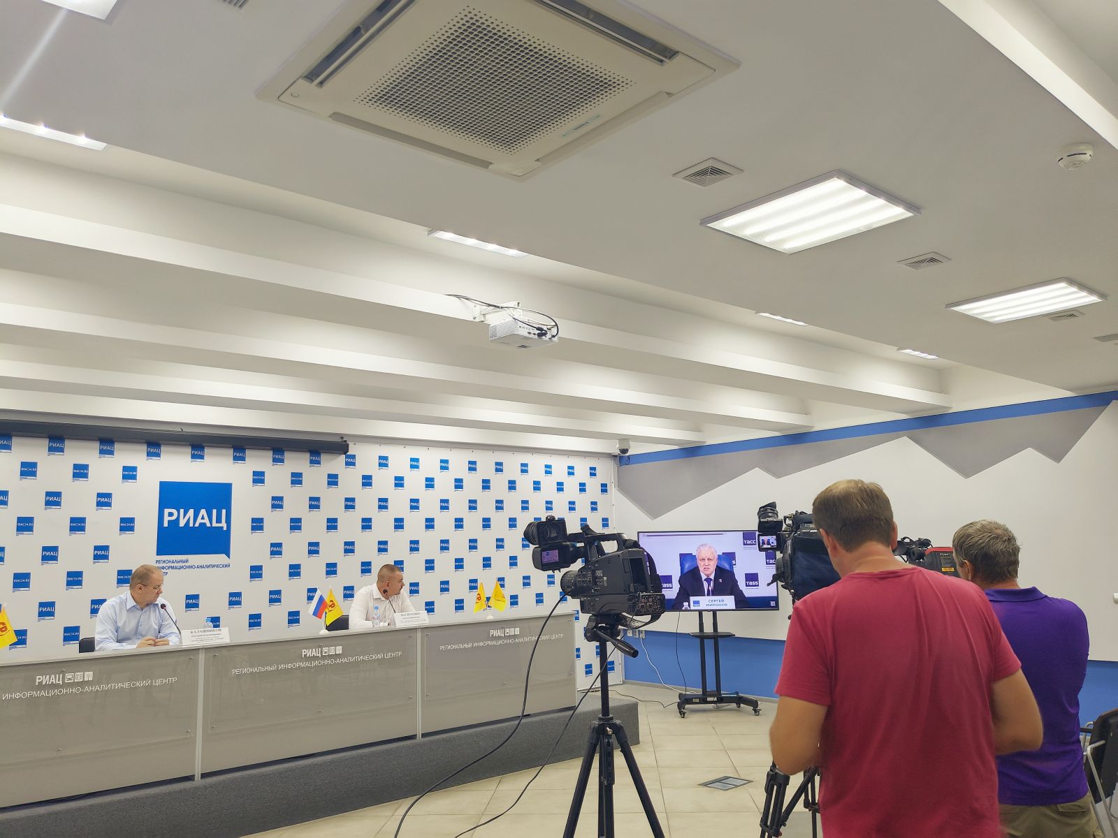 Перед началом пресс-конференции все присутствующие прослушали выступление лидера СРЗП Сергея Миронова, после чего приступили к проведению региональной части мероприятия.