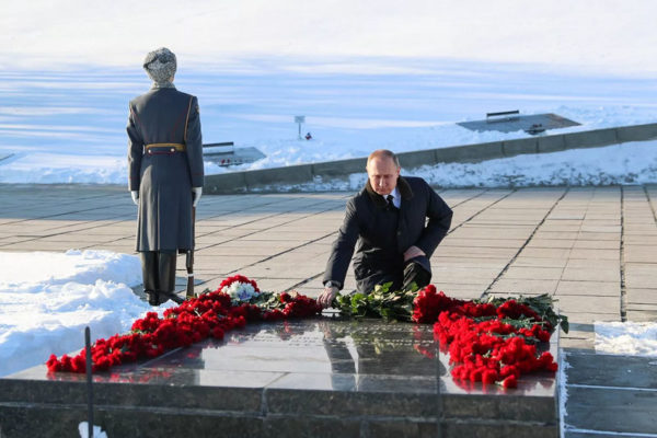 Владимир Путин на Мамаевом кургане в 2018 году (пресс-служба Кремля)Если глава государства прибудет в Волгоград, то традиционным станет возложение цветов на Мамаевом кургане.