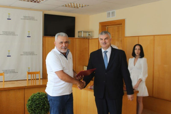 Директору ООО «Общестрой» Сергею Райаляну вручает почетную грамоту первый заместитель главы города Валерий КолесниковВ администрации Камышина состоялась торжественная церемония награждения представителей малого и среднего бизнеса. Как сообщили в пресс-службе городской администрации, почетными грамотами и благодарственным письмом комитета экономической политики и развития Волгоградской области были награждены: директор ООО «БизнесСтройПроект» Александра Вихлянцева, индивидуальные предприниматели Наталья Сухотина и Вадим Яковенко.