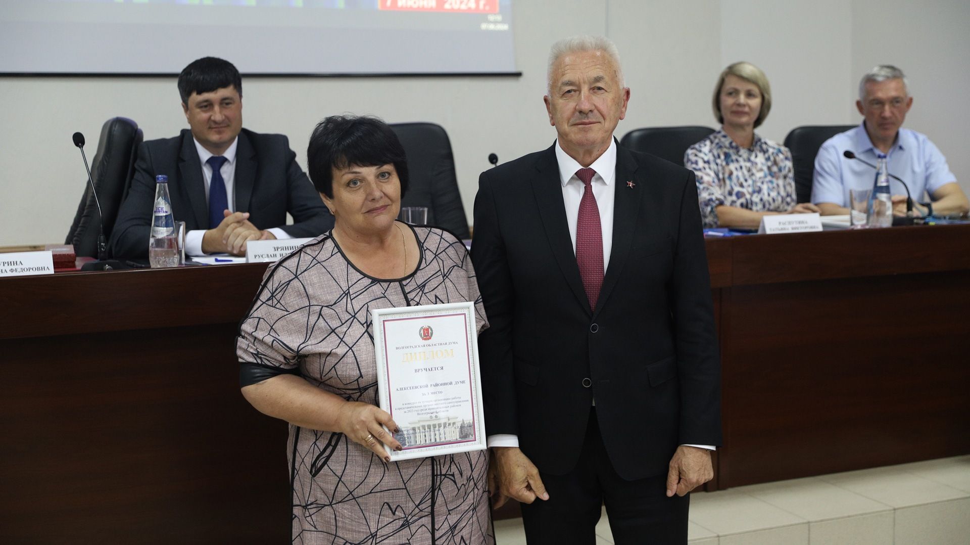 Церемония прошла в Алексеевском районе в рамках заседания Совета руководителей представительных органов муниципальных образований при Волгоградской областной Думе.