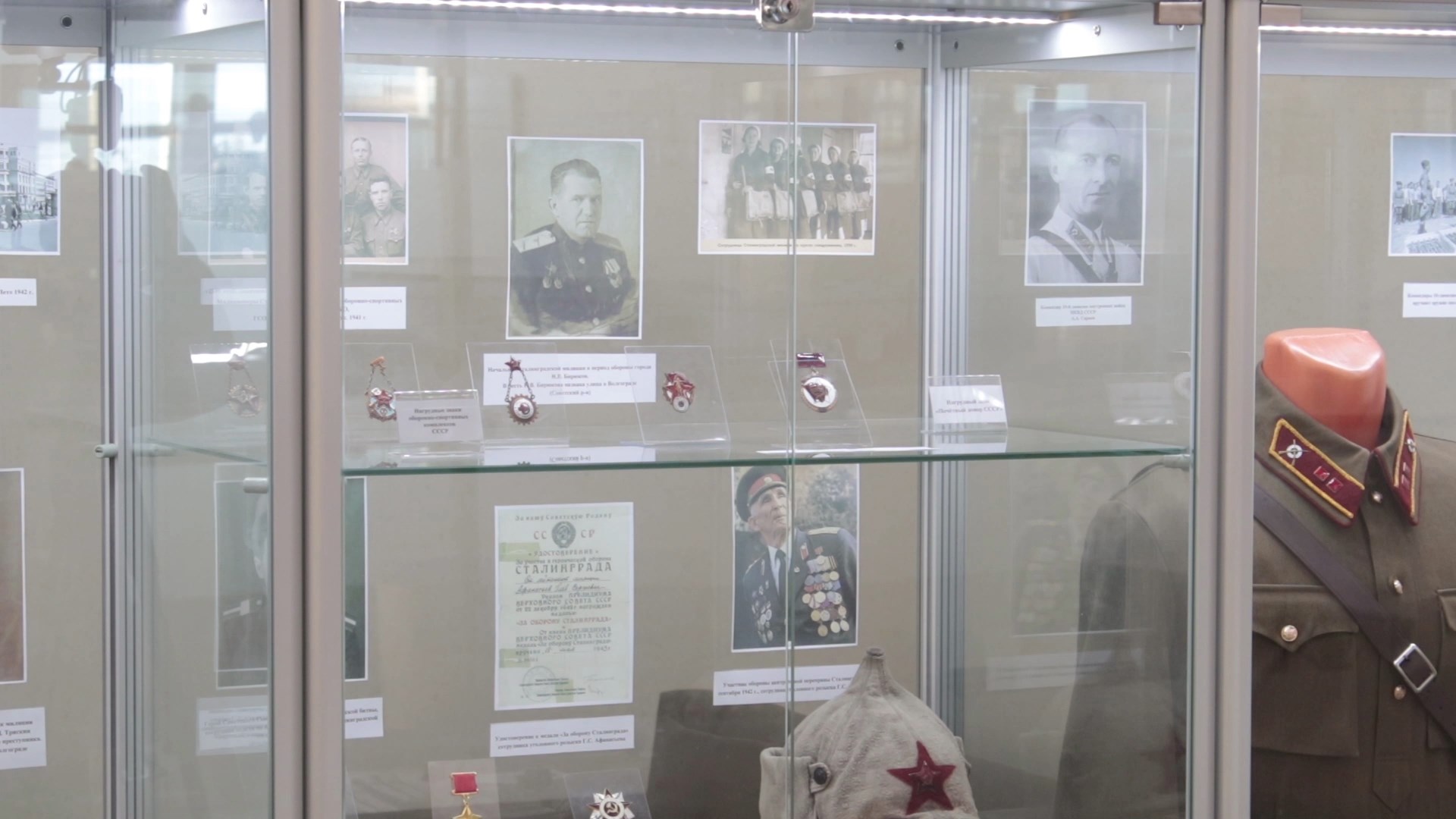 ВАЛЕНТИН РОСТОВСКИЙ, ДИРЕКТОР МУЗЕЯ ГУ МВД РОССИИ ПО ВОЛГОГРАДСКОЙ ОБЛАСТИ: «Прежде всего фотографии и документы, причастные к этим фотографиям. Допустим, у нас есть фотография Кузьмы Антоновича Костюченко, командира первого истребительного батальона. И есть награды его. То есть мы видим ордена, которые были у многих, и тут мы показываем фотографию с этими орденами, показываем удостоверение, и это все соединяется. Теоретические знания, которые мы когда-то учили, с каким-то предметным памятником, который существовал в то далекое время».