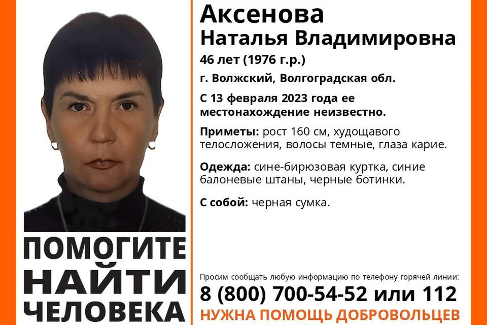 46-летняя Наталья Аксенова пропала в Волжском Волгоградской области