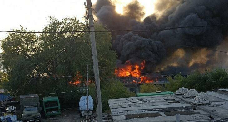 Сегодня, 24 сентября, в Камышине случился пожар в складских помещениях в районе бывшей межрайбазы.