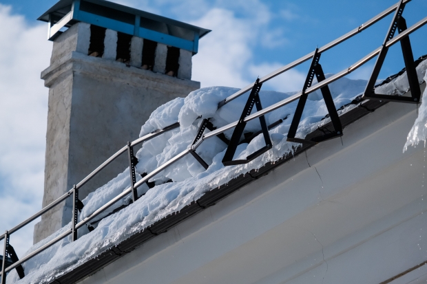 Мягкие кровли от снега не чистят, помимо желобов и свесов на скатных рулонных кровлях с наружным водостоком, а также снежных навесов и наледи на балконах и козырьках.