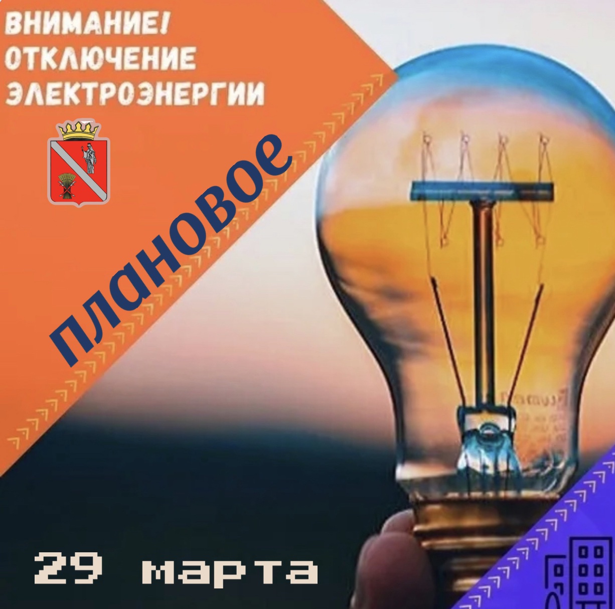 будет произведено временное отключение электроэнергии.