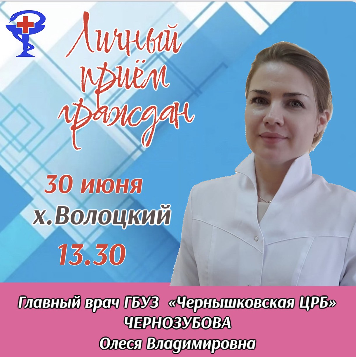 30 июня в 13.30 приём пройдет в х. Волоцком.