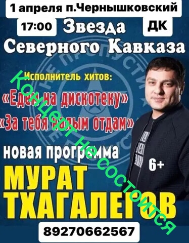 Концерт Мурата Тхагалегова 1 апреля в 17.00 НЕ СОСТОИТСЯ.