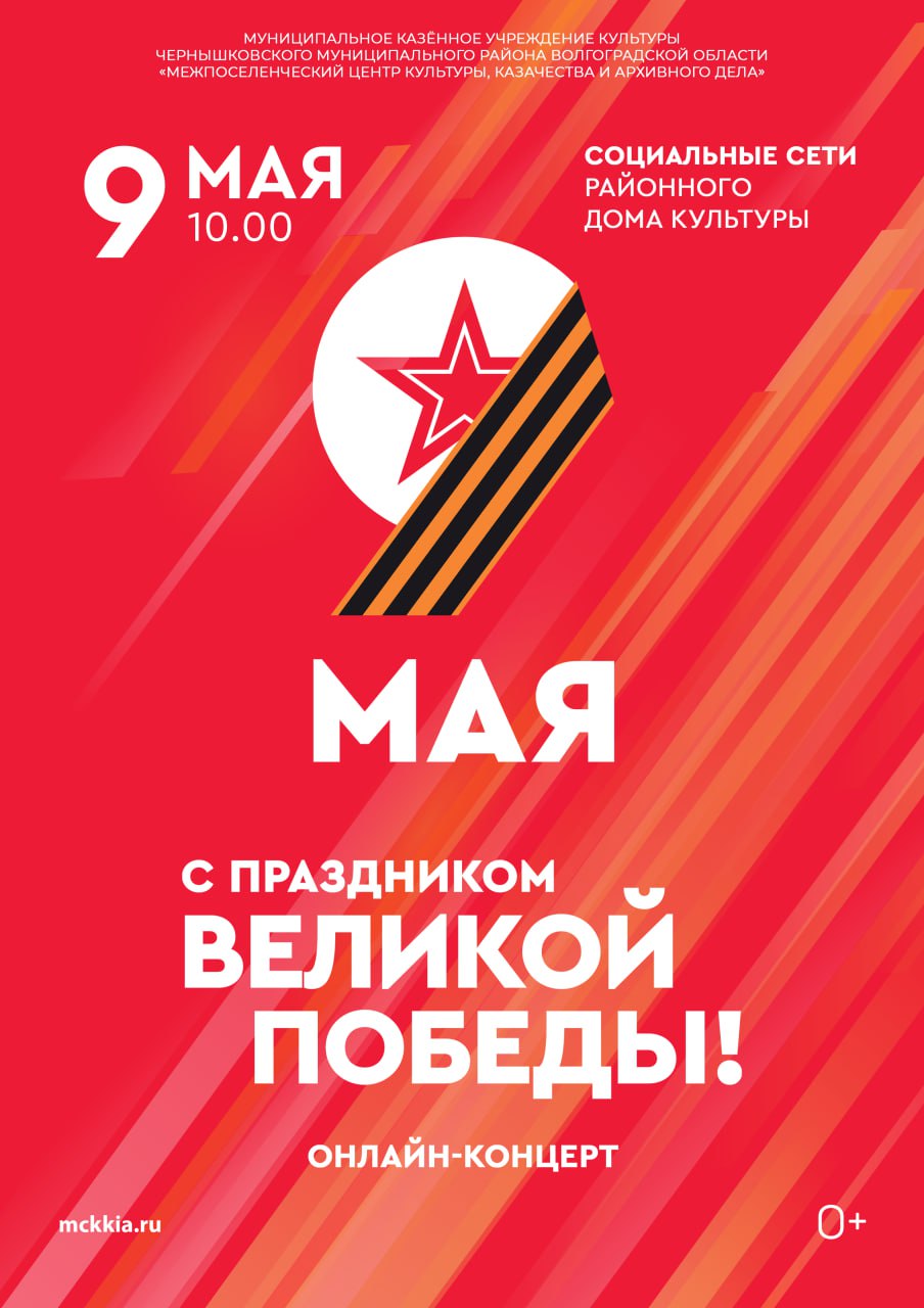 Уважаемые жители и гости Чернышковского муниципального района! Сообщаем, что по итогам совместного заседания антитеррористической комиссии и оперативной группы Чернышковского муниципального района, на котором рассмотрены вопросы принятия дополнительных мер, направленных на усиление антитеррористической безопасности потенциальных объектов террористических посягательств, расположенных на территории нашего района, посвящённые Дню Победы массовые мероприятия в очном формате отменены.