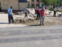 Компания-исполнитель приступила к укладке тротуарного покрытия вдоль прогулочной зоны между пр.