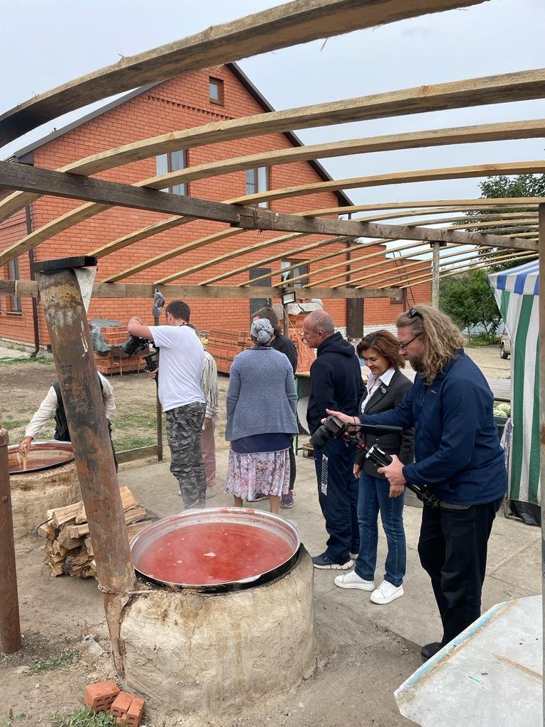 Сегодня, 12 сентября, одним из главных «героев» уже стал знаменитый камышинский арбуз: съёмочную группу пригласила в гости семья Ковалёвых из села Антиповка. Телевизионщики сняли, как готовят арбузный мёд по старинному рецепту (без крупинки сахара!) и продегустировали свежий нардек. Кроме того, хозяева показали, как собирают и сушат арбузные семечки для высадки на следующий год, как готовят сыр из козьего молока.