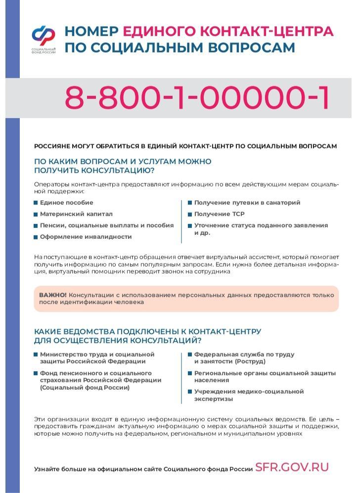 НОМЕР ЕДИНОГО КОНТАКТ-ЦЕНТРА ПО СОЦИАЛЬНЫМ ВОПРОСАМ: 8-800-1-00000-1