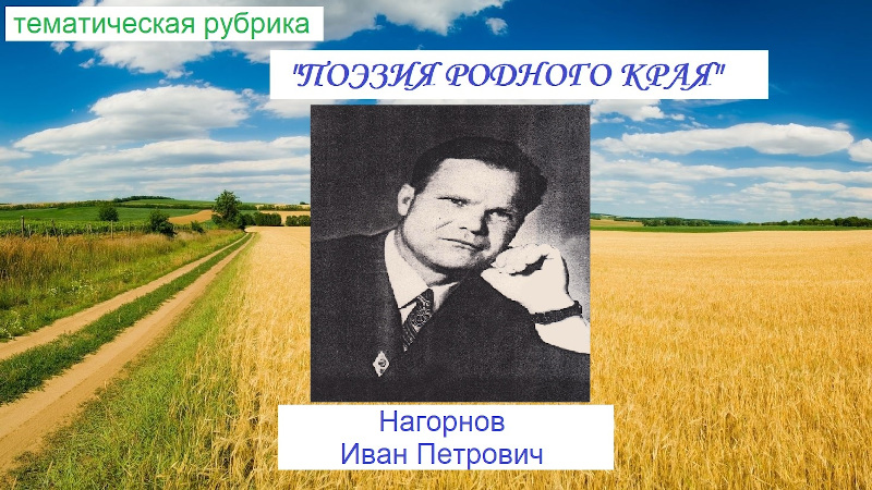 Продолжаем рубрику Чернышковской центральной библиотеки «Поэзия родного края». Сегодня вы познакомитесь с творчеством Нагорнова Ивана Петровича.