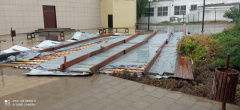 Порывистый ветер снёс часть кровли со здания кинотеатра. На место оперативно выехали сотрудники администрации города. Решается вопрос о восстановлении кровли. Работа кинотеатра временно приостановлена.