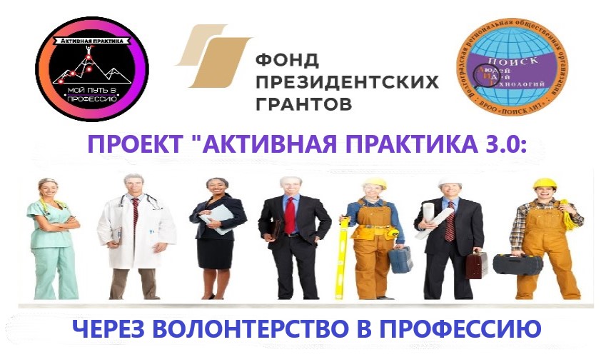 Если вы активный и творческий человек с отличными коммуникативными способностями, считаете себя хорошим организатором и готовы работать в команде, тогда мы предлагаем вам принять участие в проекте «Активная практика 3.0: через волонтерство в профессию», поддержанного Фондом президентских грантов в 2023г.! Да-да, в Волго градской региональной общественной организации «Поиск людей, идей, технологий» это возможно, и не важно, кто вы – школьник, студент, выпускник или специалист, если вам 14+, вы можете принять участие в проекте!