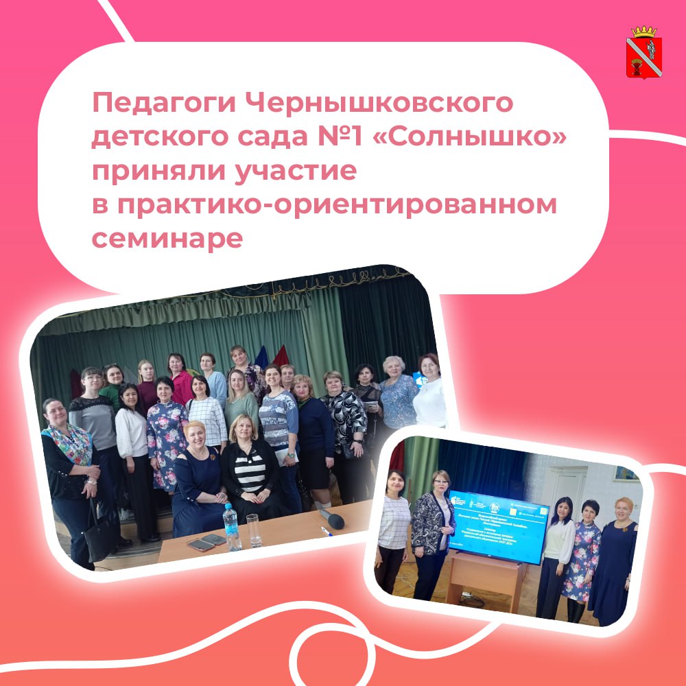 На прошедшей неделе педагоги Чернышковского детского сада №1 «Солнышко» - Г. В. Карпова, З.Г. Небабина и Н.Е. Баймашева - приняли участие в практико-ориентированном семинаре «Содержание и актуальные вопросы Федеральной образовательной программы дошкольного образования», который проходил в областном центре.
