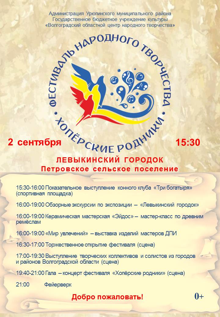 Урюпинцы приглашают вас на фестиваль народного творчества «Хоперские родники», который пройдет 2 сентября в Петровском сельском поселении.