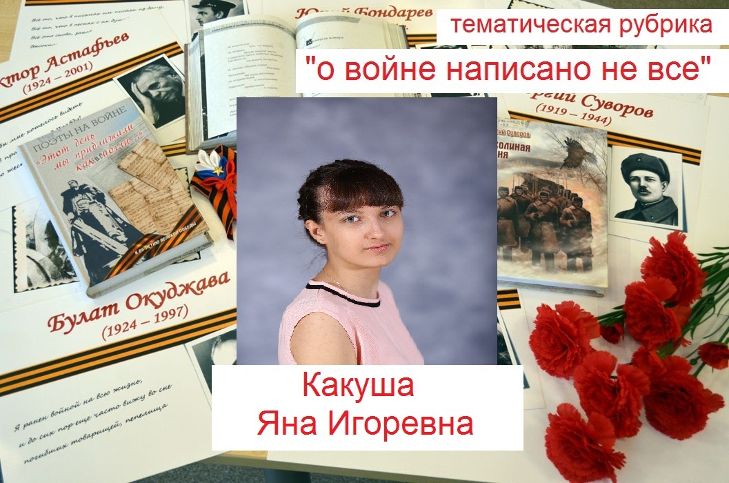 Продолжаем рубрику «О войне написано не все» Чернышковской центральной библиотеки. Сегодня предлагаем вам познакомиться с творчеством Яны Игоревны Какуши.