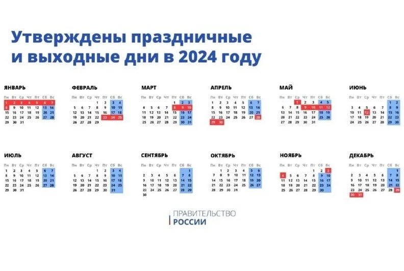 Правительством России утвержден календарь праздничных и рабочих дней на 2024 год.