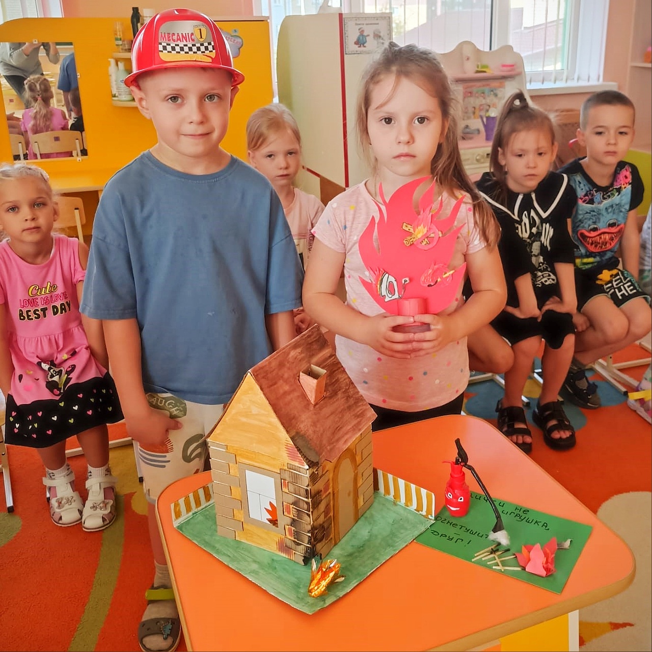 Во всех группах были проведены беседы и практические занятия по темам: «Что значит служба спасения?», «Для чего нужна пожарная охрана?», «Будем осторожными», «Спички детям не игрушка».