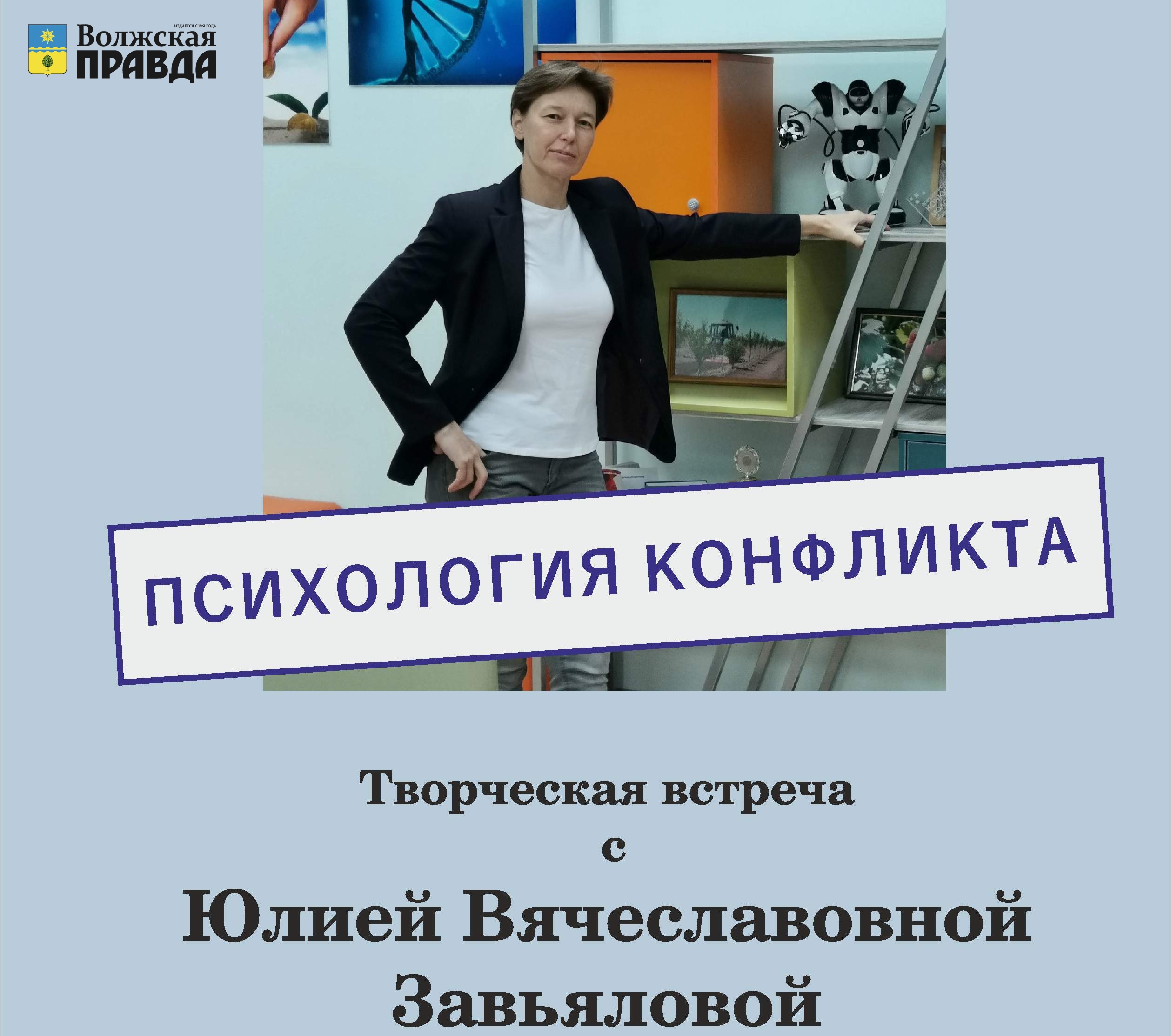 В городском выставочном зале им. Г.В. Черноскутова 19 марта состоится творческая встреча с психологом Юлией Завьяловой. Темой обсуждения станет «Психология конфликта».