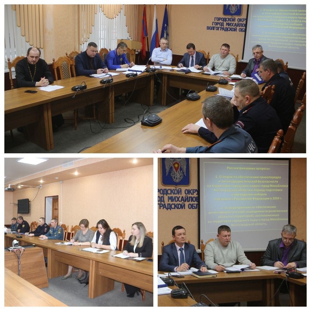 В актовом зале администрации городского округа, под руководством главы городского округа А.В. Тюрина, с участием председателя Михайловской городской Думы В.А. Круглова прошло заседание антитеррористической комиссии городского округа город Михайловка Волгоградской области. На заседании рассмотрены вопросы обеспечения безопасности в период проведения выборной компании и антитеррористической защищённости объектов на территории городского округа.