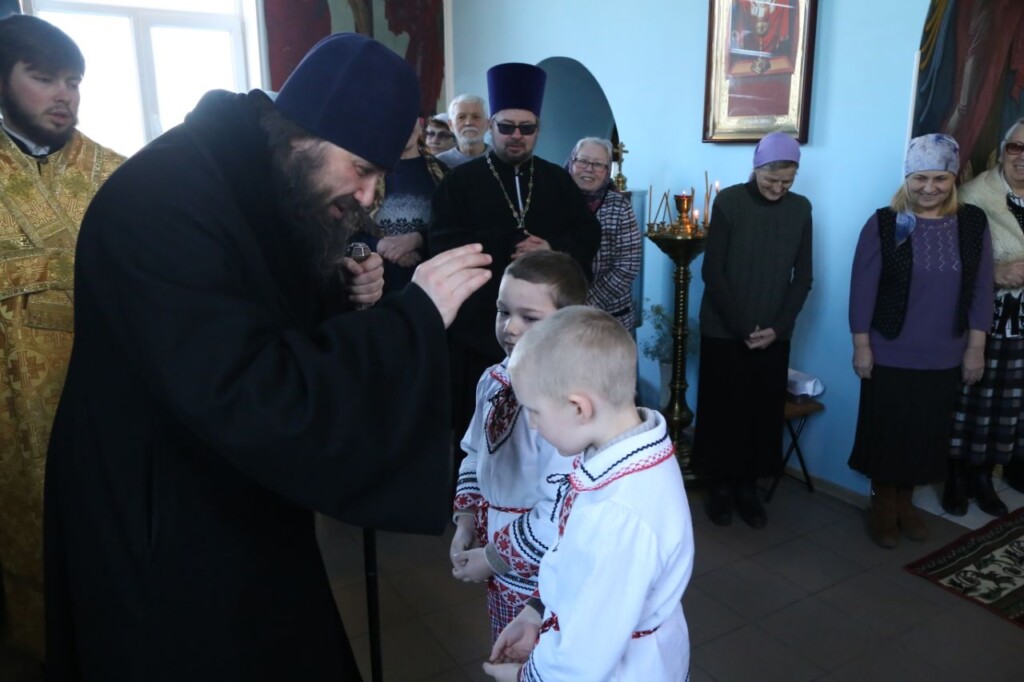 Владыку Феодора встречали воспитанники воскресной школы.