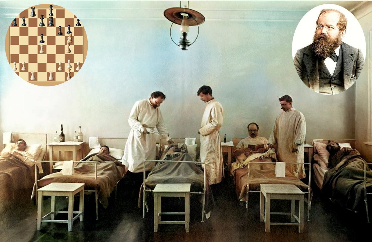 В клинике пожилой гроссмейстер, которому уже перевалило за 60, пробыл более месяца, сходя с ума каждый день. Однако и ему наконец-то повезло. Прибыл практикант, оказавшийся любителем шахмат и сразу признавший Стейница. Тот в награду сыграл с ним партию и, конечно, разбил в пух и прах, даже играя без ладьи.