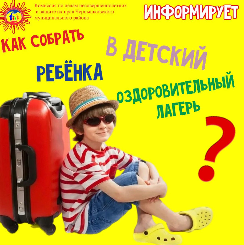 Совсем скоро наступят долгожданные каникулы и многие дети поедут в летние оздоровительные лагеря. Комиссия по делам несовершеннолетних и защите их прав Чернышковского муниципального района напоминает, как правильно собрать ребенка в лагерь.