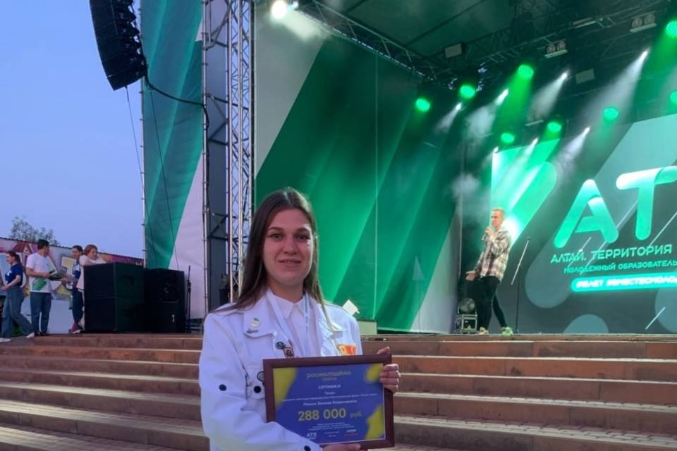 - Зинаида Минько приняла участие во Всероссийском конкурсе "Росмолодежь.Гранты", который проводился в рамках молодежного образовательного форума «Алтай. Территория развития - 2023», - рассказали в медвузе.