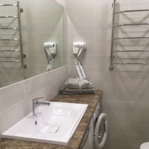 Поддержание апартаментов в блестящей чистоте достигается высокими требованиями к санитарной обработке помещения, постельное белье и полотенца в обязательном порядке проходят химическую чистку.