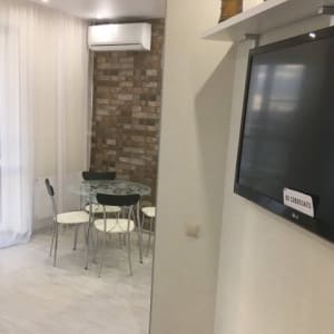 Качественные материалы внутренней отделки, мебель изготовленная по индивидуальному заказу, есть все необходимое для комфортного проживания 4-х гостей: удобные спальные места (2+2), большой встроенный шкаф для одежды, обеденная группа. Бытовая техника: большой плазменный телевизор LG Smаrt ТV 51”, кабельное телевидение на 300 каналов, холодильник, микроволновая печь, электро-плита, чайник, стиральная машинка, сплит система, утюг (гладильная доска, сушилка в наличии), фен. Имеется вся необходимая посуда: тарелки, приборы, стаканы, бокалы, кастрюли, сковородка, салатница и т.д.
