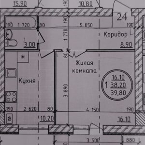 - Общая площадь: 39.8 м²