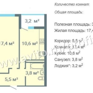 - Жилая площадь: 17.4 м²
