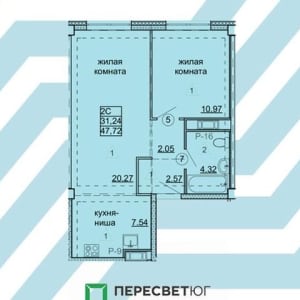 - Общая площадь: 47.7 м²