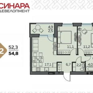 - Общая площадь: 54.8 м²