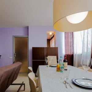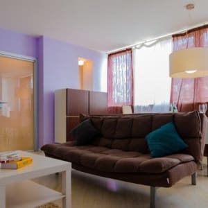 Квартира предназначена для размещения 4-х гостей (2+2). 4 спальных места, 1 двухспальная кровать, 1 двухспальный диван, дизайнерская мебель. Комнаты изолированные. Кухня оснащена полноценным кухонным гарнитуром, обеденным столом в гостиной. Совмещенный санузел. Квартира без балкона, не прокуренная. Имеется вся необходимая мебель и техника
